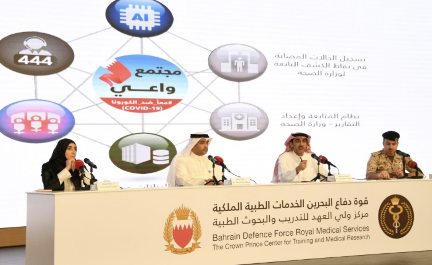 وأضاف القائد أنه وفق التوجيهات الملكية السامية في افتتاح دور الانعقاد الثاني من الفصل التشريعي الخامس لمجلسي الشورى والنواب تم ربط تقنيات الذكاء الاصطناعي بتطبيقات الحكومة الإلكترونية، كما تم توظيف تقنيات الذكاء الاصطناعي في تطوير تطبيق مجتمع واعي مثل خاصيةGPS، وطلب التطبيق من الحالة التقاط صورة آنية، ورصد حالات المخالطة بصورة تلقائية عبر النظام دون أي تدخل بشري، إذ أن توظيف الذكاء الاصطناعي قد أسهم في تعزيز قدرة وفعالية التطبيق والسوار الإلكتروني على تتبع كافة الحالات الخاضعة للحجر المنزلي ورصد الحالات المخالطة.