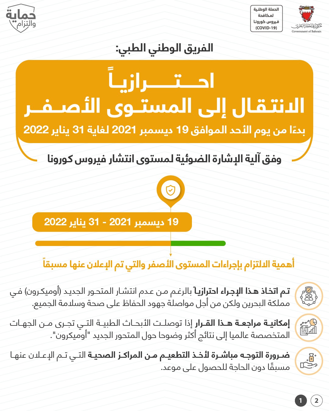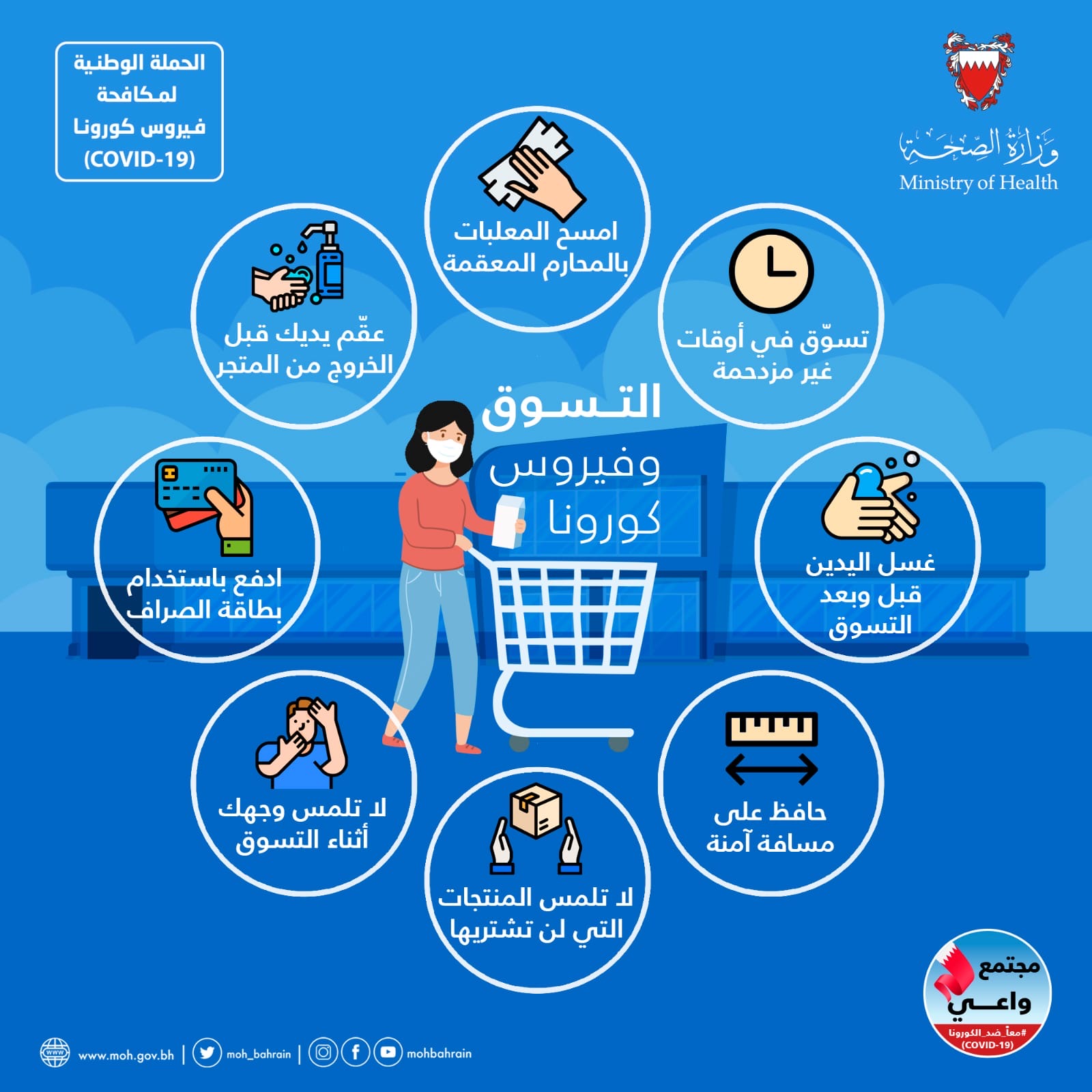 من أجل مواصلة الحفاظ على صحة وسلامة الجميع وبناءً على توصيات الفريق الوطني الطبي للتصدي لفيروس كورونا، تقرر بدءًا من اليوم الأربعاء الموافق 3 يونيو 2020 إلزامية ارتداء الكمامات