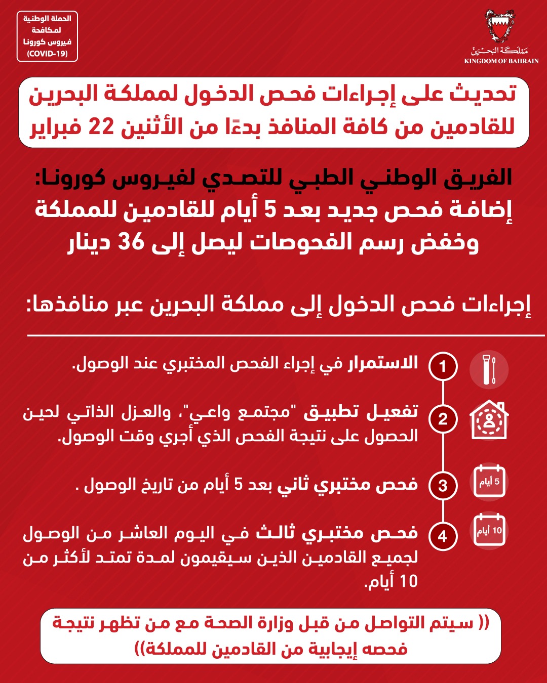 خفض مدة الحجر المنزلي الاحترازي من 14 يوم إلى 10 أيام للمسافرين والمخالطين