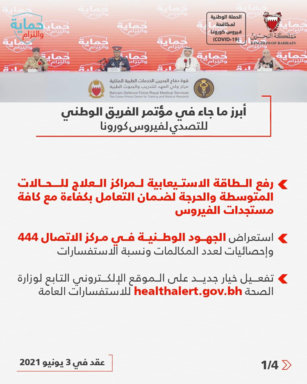 أبرز ما جاء في المؤتمر الصحفي للفريق الوطني للتصدي لفيروس كورونا #نواصل_بعزم #كلنا_فريق_البحرين