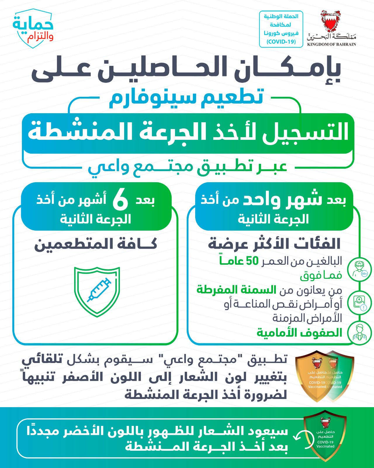 حفاظاً على صحة وسلامة الجميع للتصدي لفيروس كورونا (كوفيد-19) يرجى الالتزام بعدد من التدابير الاحترازية خلال عيد الاضحى المبارك